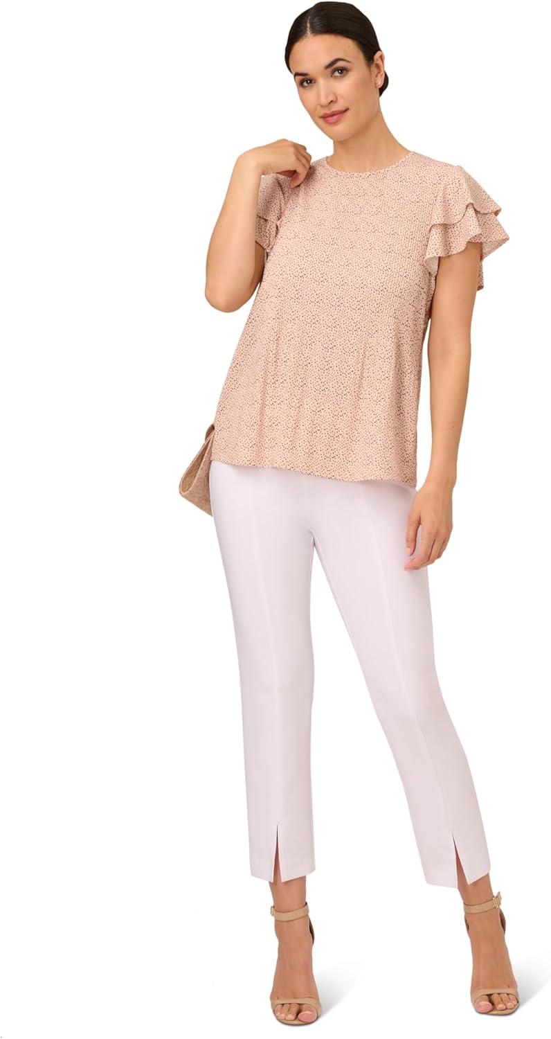 Adrianna Papell womens Solid Short Ruffle Sleeve Popover Blouse(Apricot Sorbet)