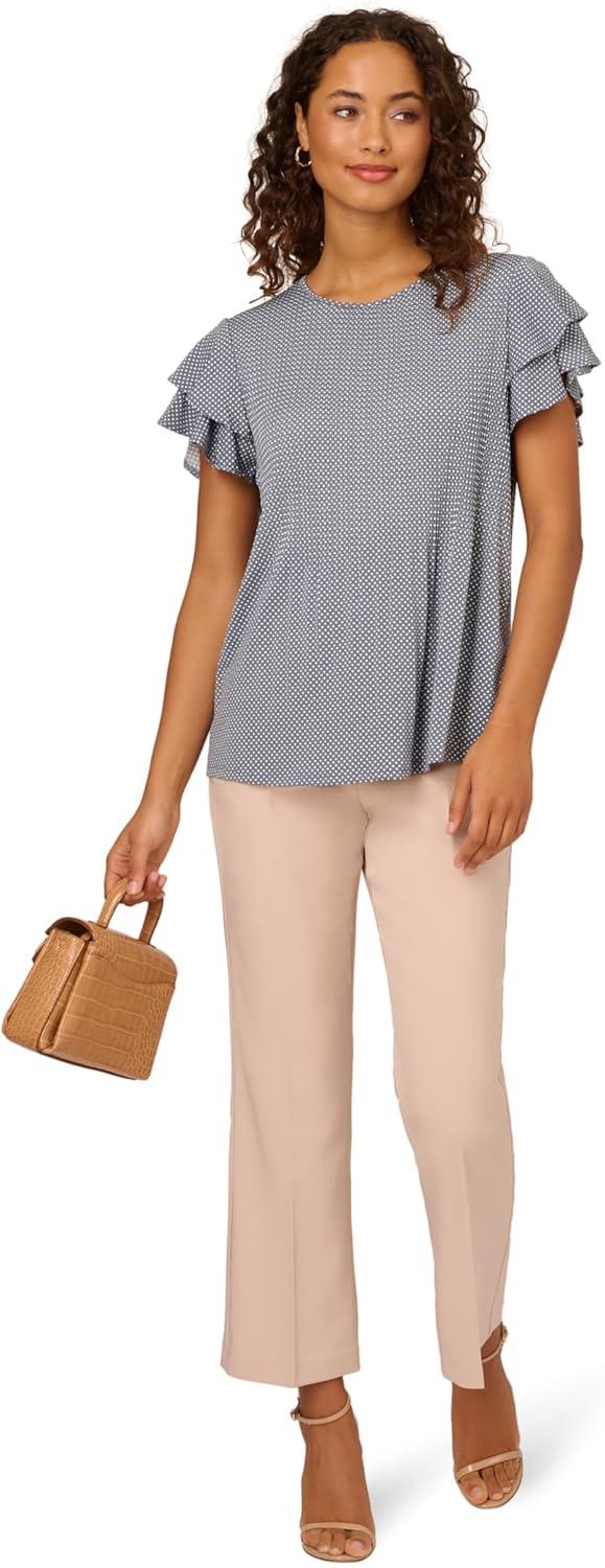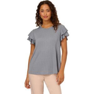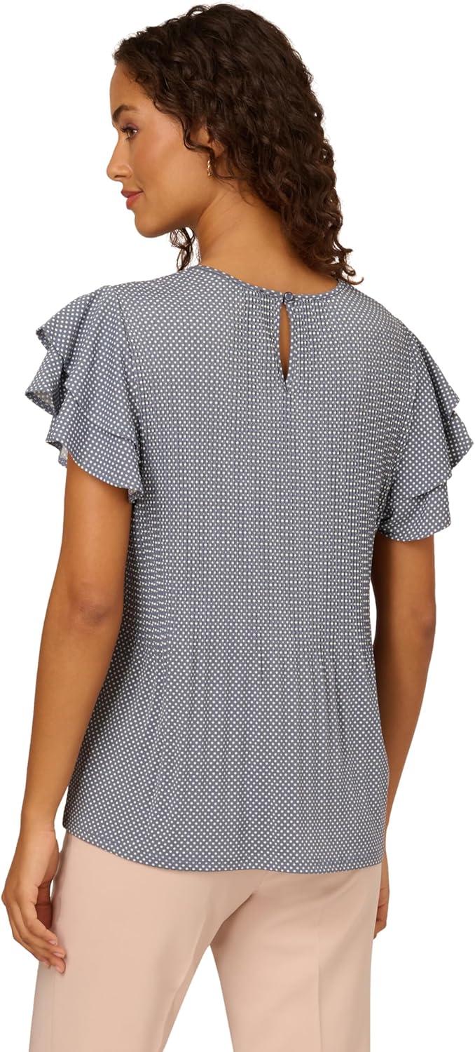 Adrianna Papell Womens Pleated Knit Double Sleeve Top(Dusty Blue/ Ivory Small Dot)