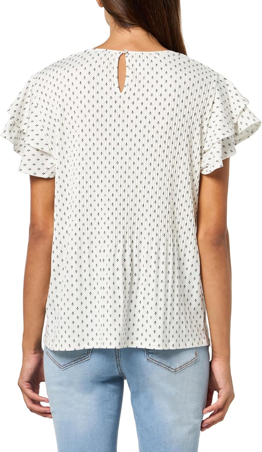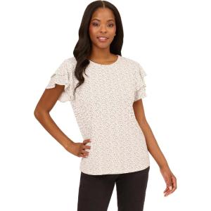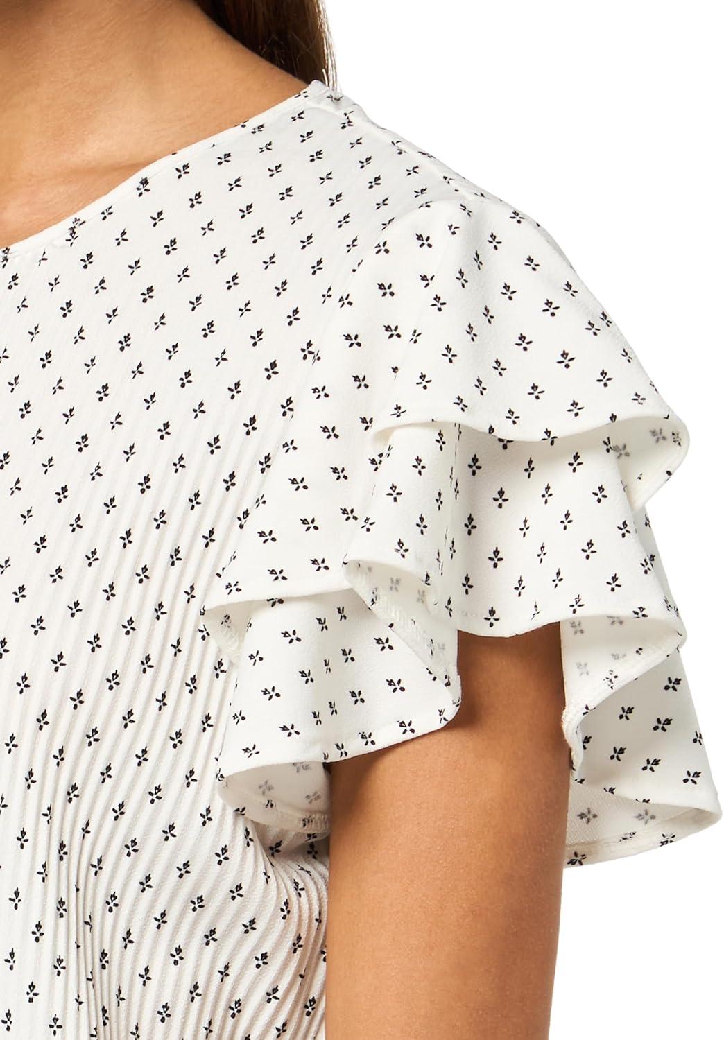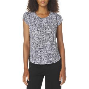 Adrianna Papell Womens Pleated Knit Double Sleeve Top(Ivory Ditsy Foulard)