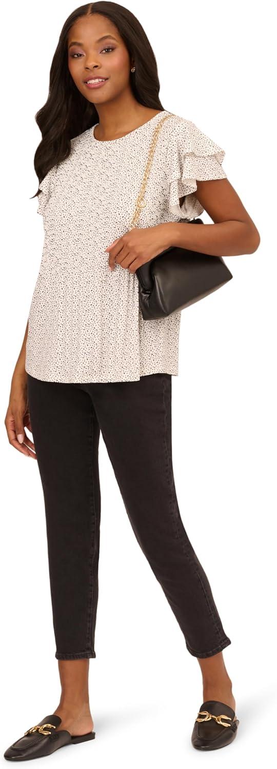 Adrianna Papell Women’s Solid Woven Airflow Flutter Sleeve Top(Black)
