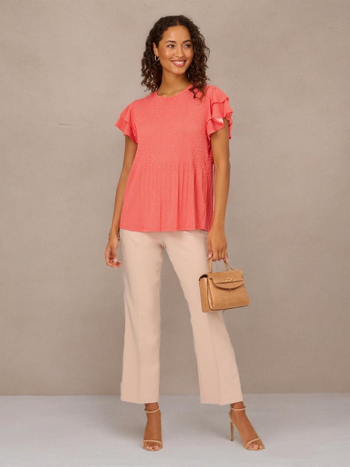 Adrianna Papell Women’s Solid Pleat Double Sleeve Top(Coral Pink)