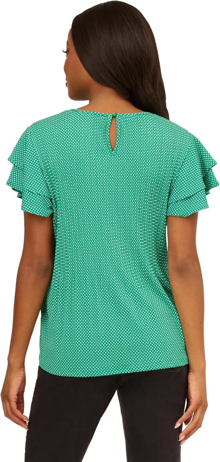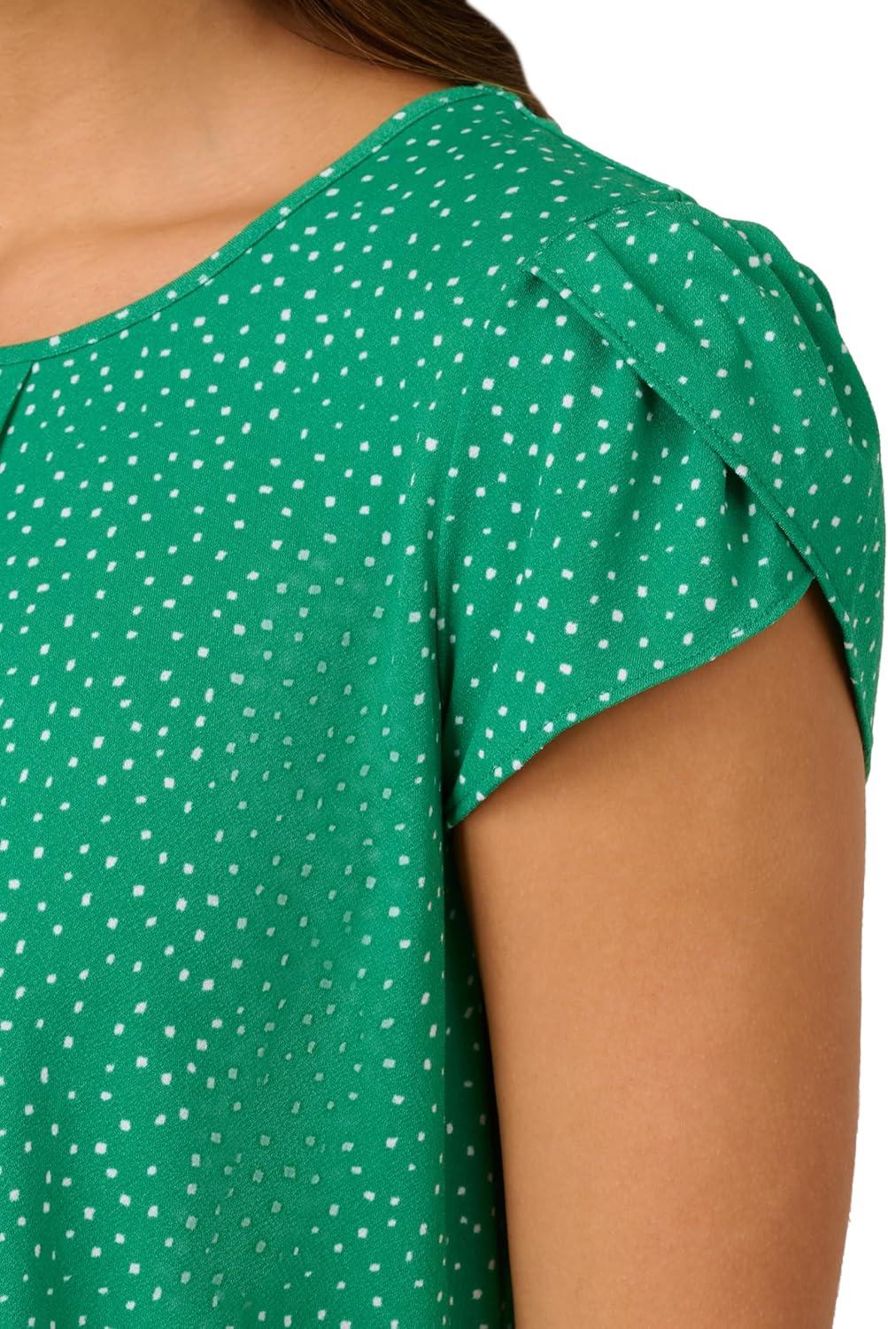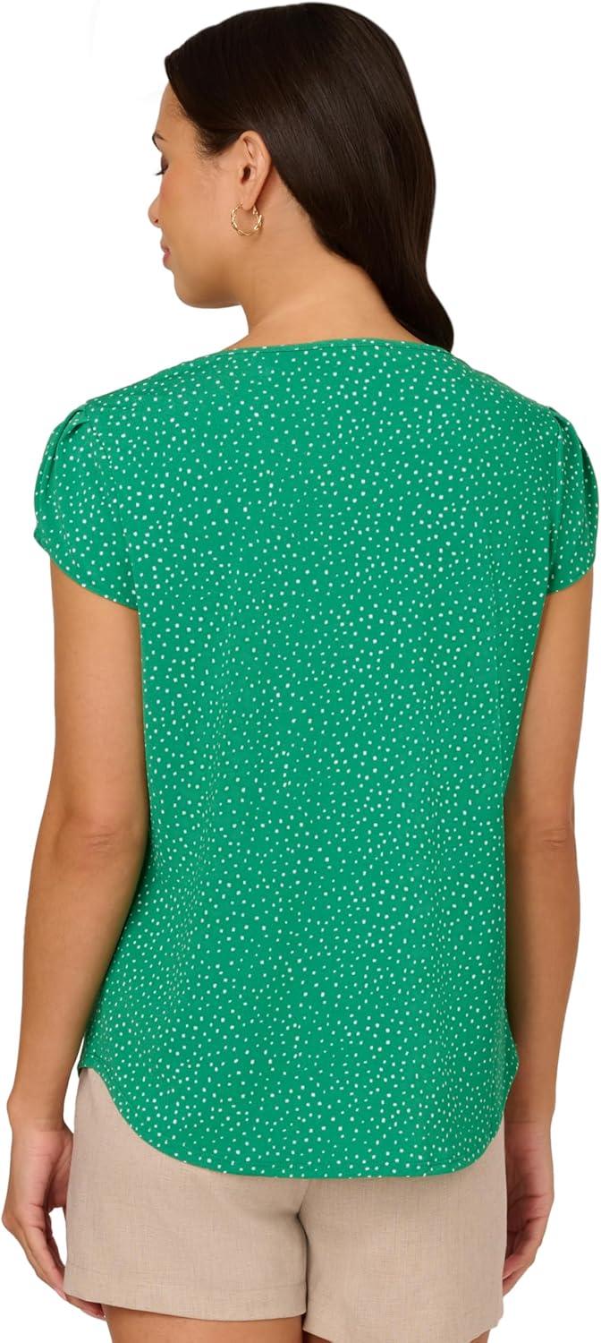 Adrianna Papell Womens Pleated Knit Double Sleeve Top(Vivid Green/ Ivory Small Dot)
