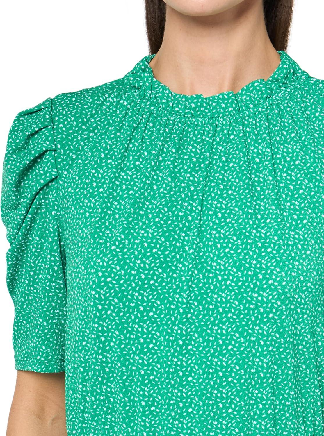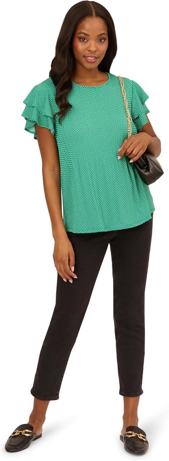 Adrianna Papell Women’s Solid Short Ruffle Sleeve Popover Blouse(Vivid Green)