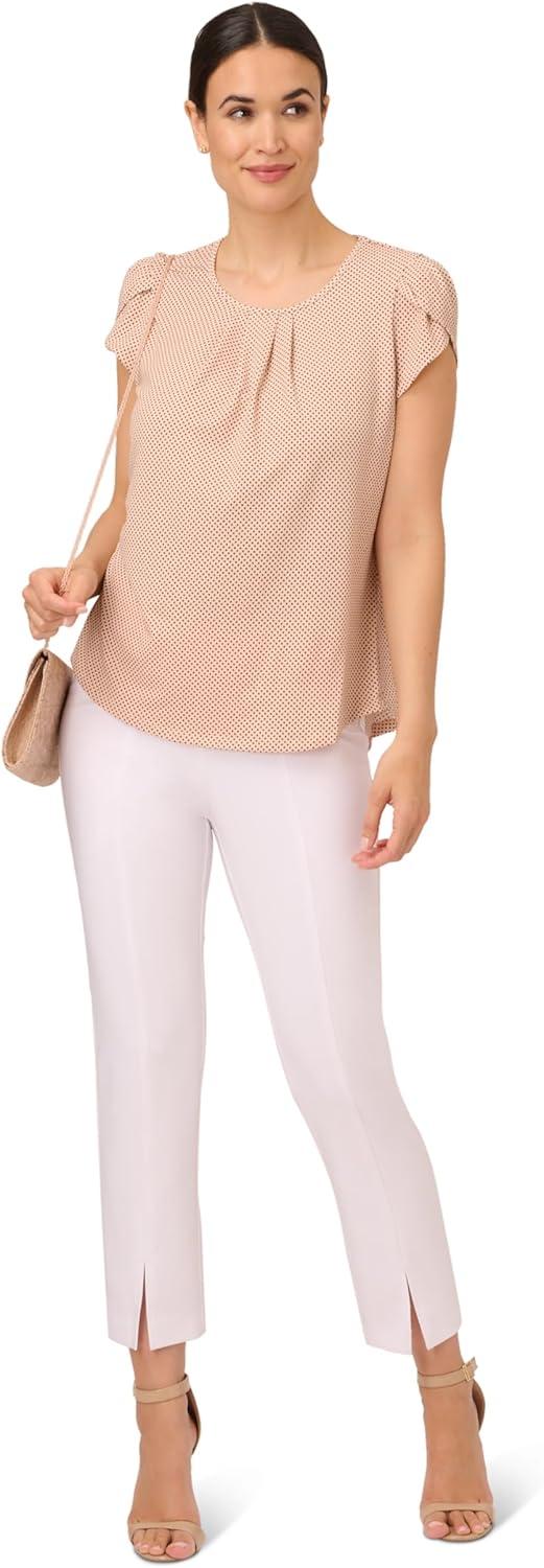 Adrianna Papell Womens Pleated Knit Double Sleeve Top(Ivory Blooming Dot)