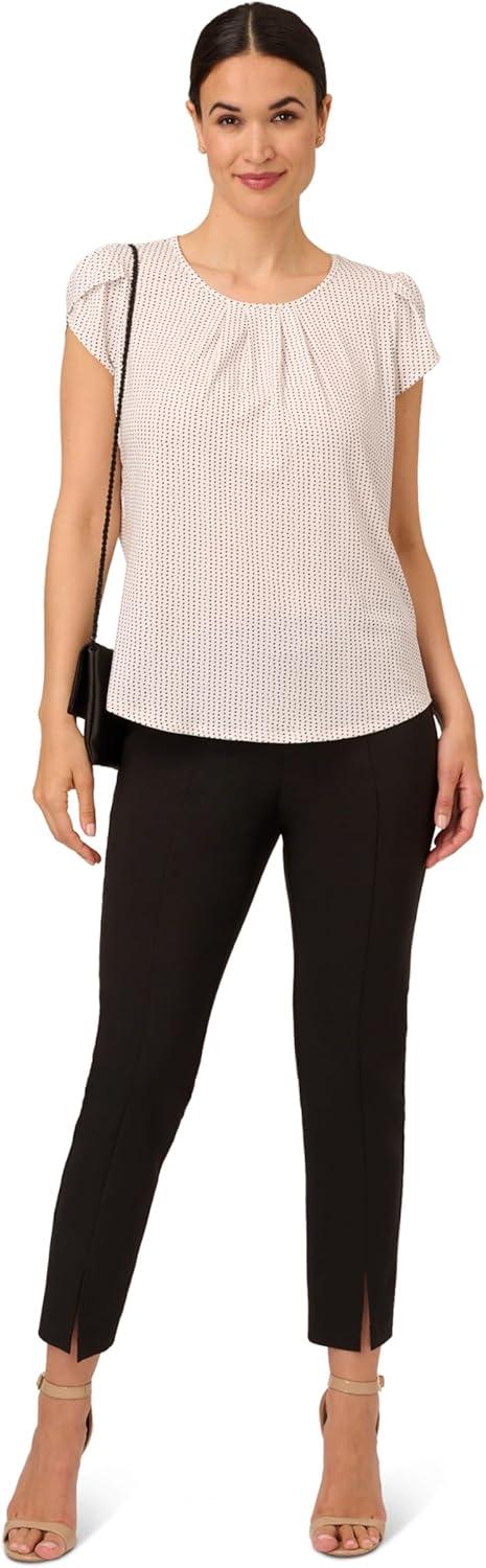 Adrianna Papell Womens Pleated Knit Double Sleeve Top(Ivory/Black Micro Dot)