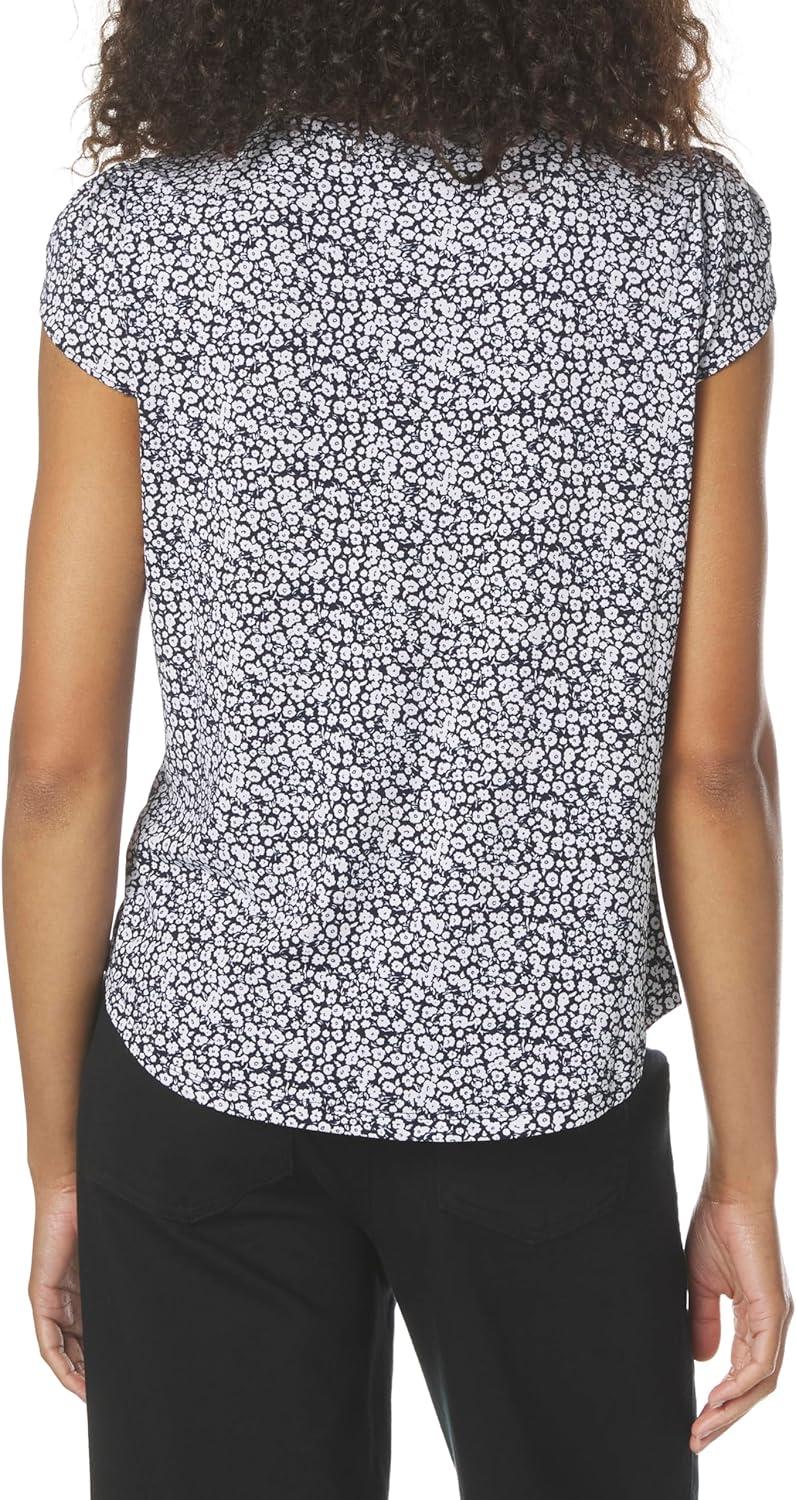 Adrianna Papell Women’s Print Collared V-Neck Knit Top(Hunter Semi Circle Interlock)