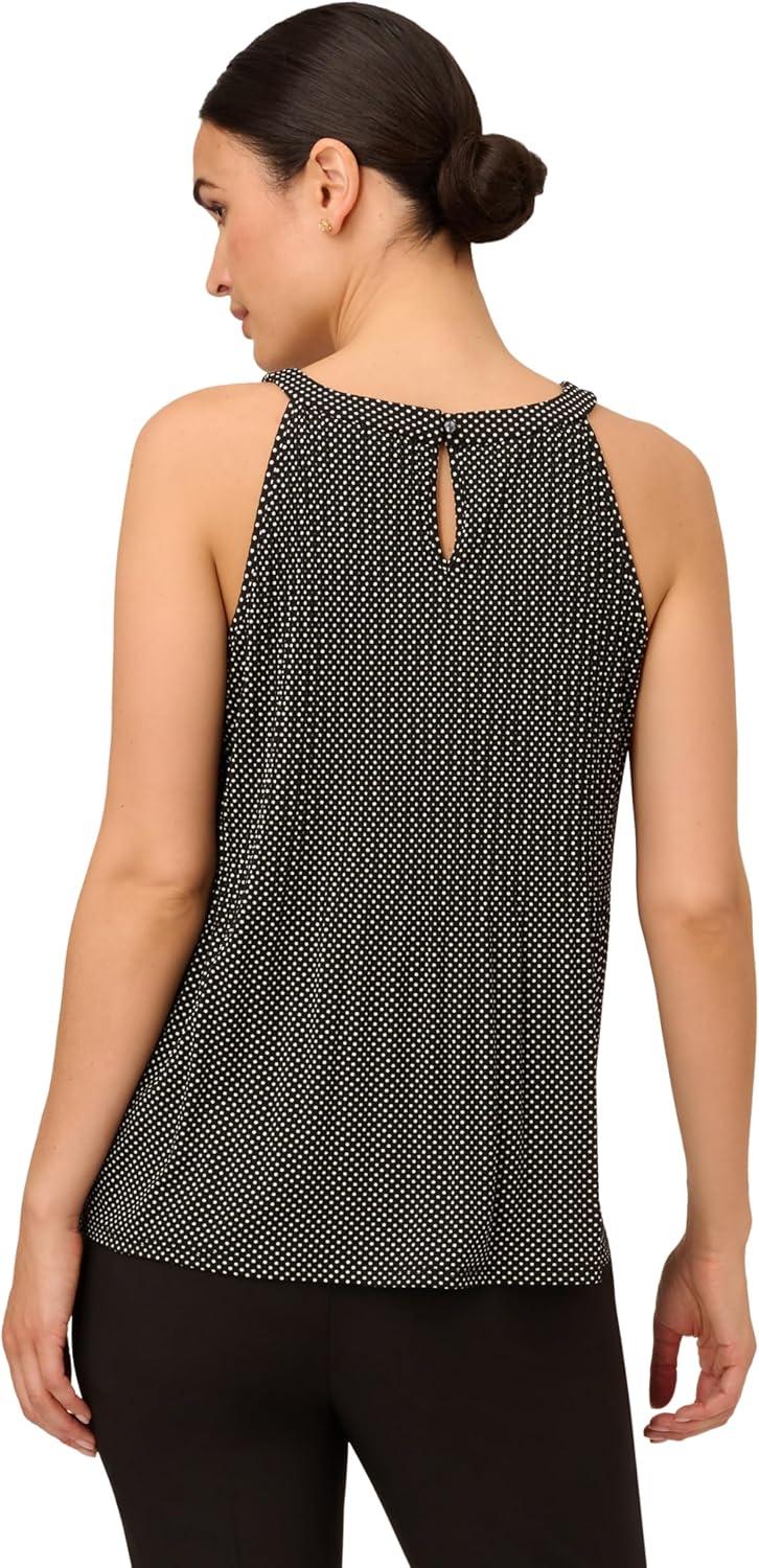 Adrianna Papell Women’s Printed Pleated Halter Top(Black/Ivory Small Dot)