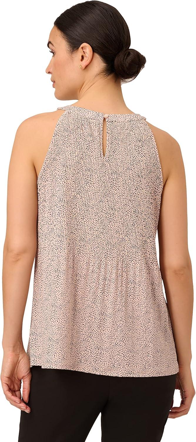 Adrianna Papell Women’s Printed Pleated Halter Top(Champagne Painted Dots)