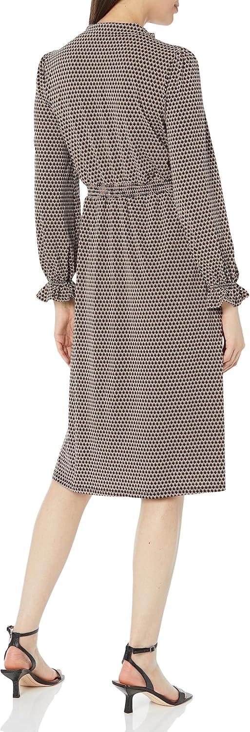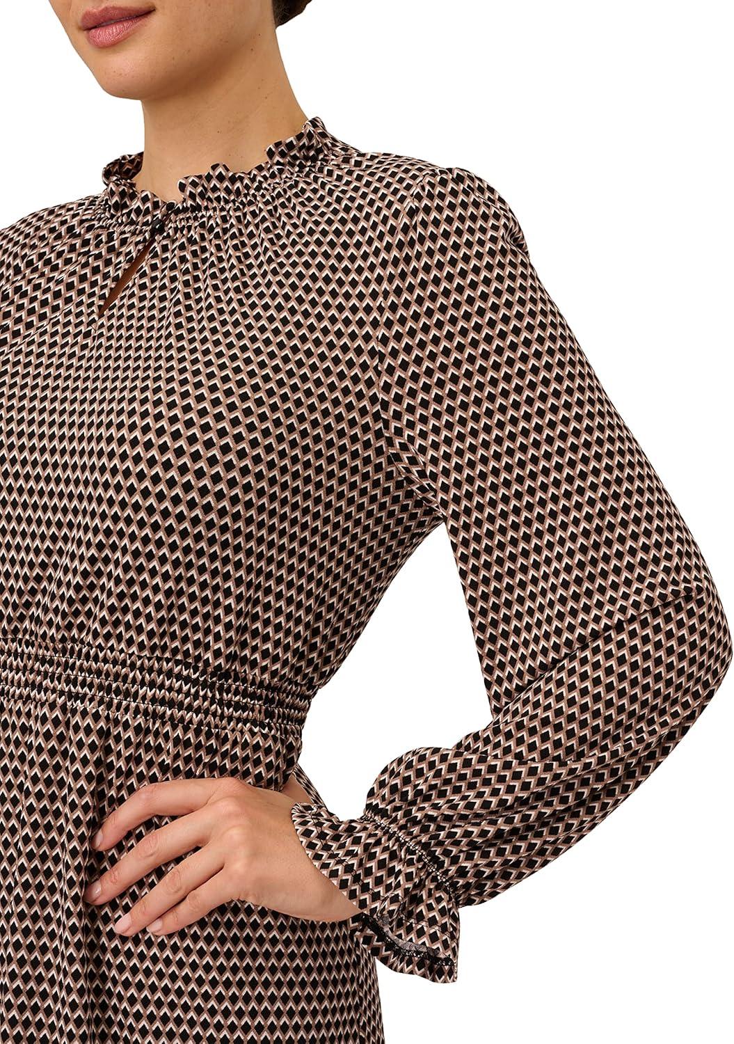 Adrianna Papell Women’s Printed Smocked Waist Dress(Cocoa/Black Shadowed Geo)