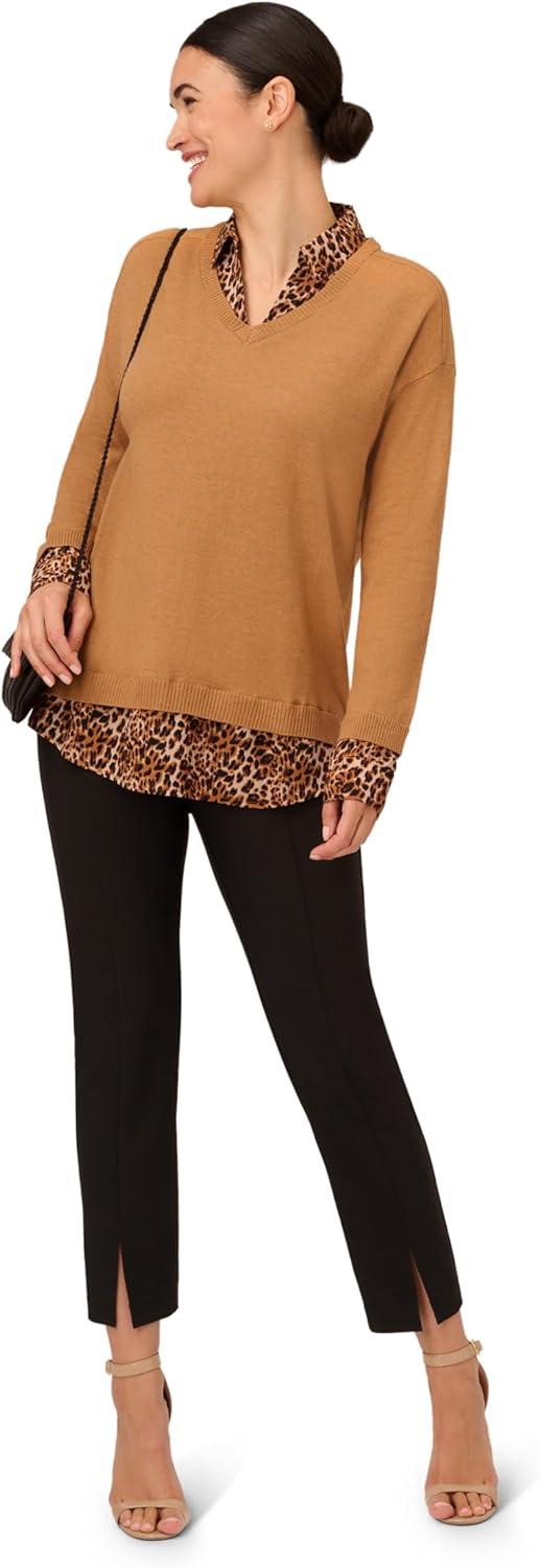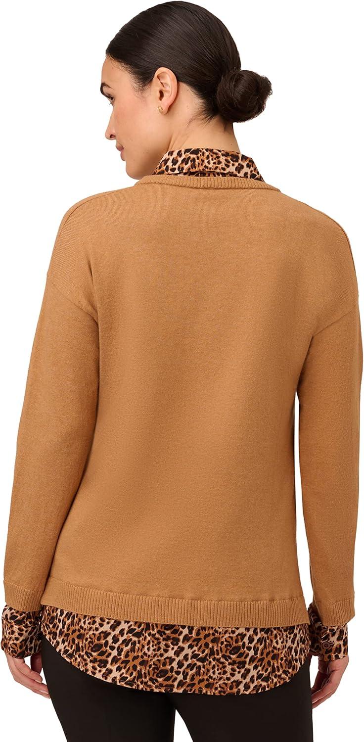 Adrianna Papell Women’s Clip Dot Sleeve Twofer Sweater(Toasted Bronze)