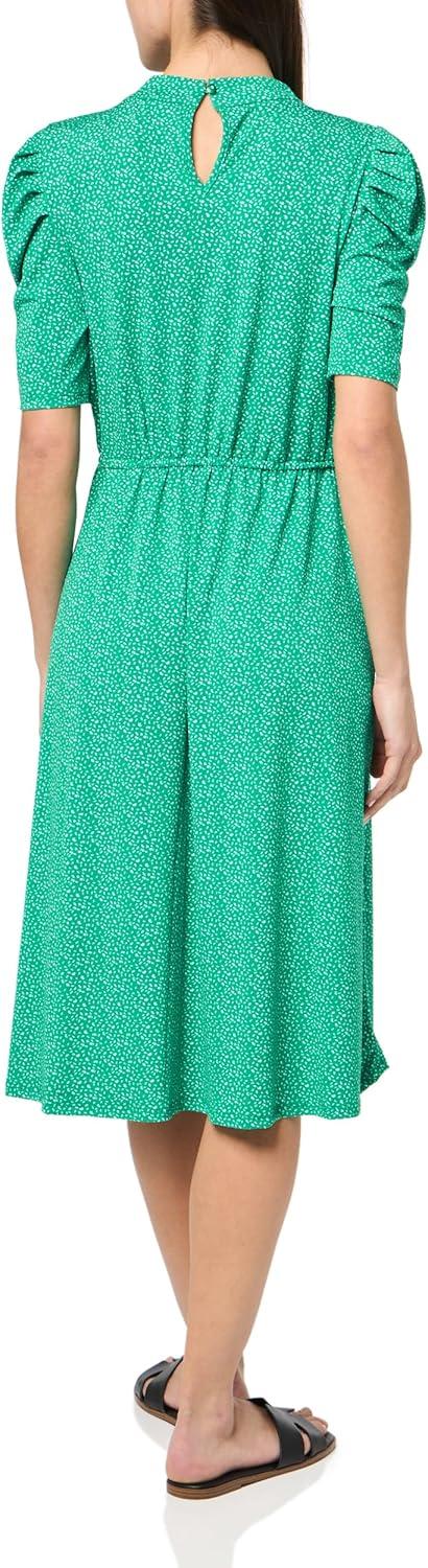 Adrianna Papell Womens Ruffle Neck Short Sleeve Dress(Emerald Scattered Leaf)