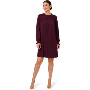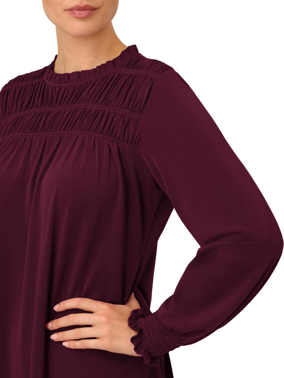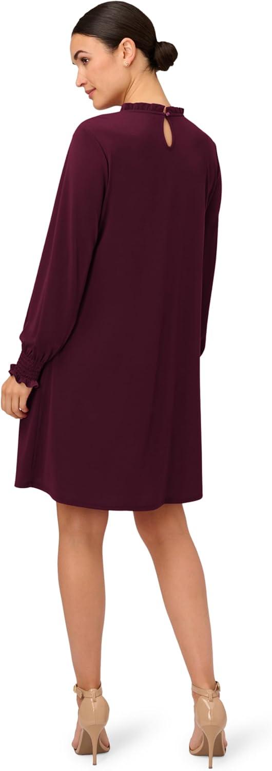 Adrianna Papell Women’s Shirred Top Ruffle Neck Dress(Plum)