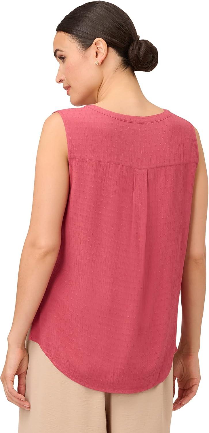 Adrianna Papell Women’s Solid Woven Dobby Dot Sleeveless V-Neck Top(Rose)