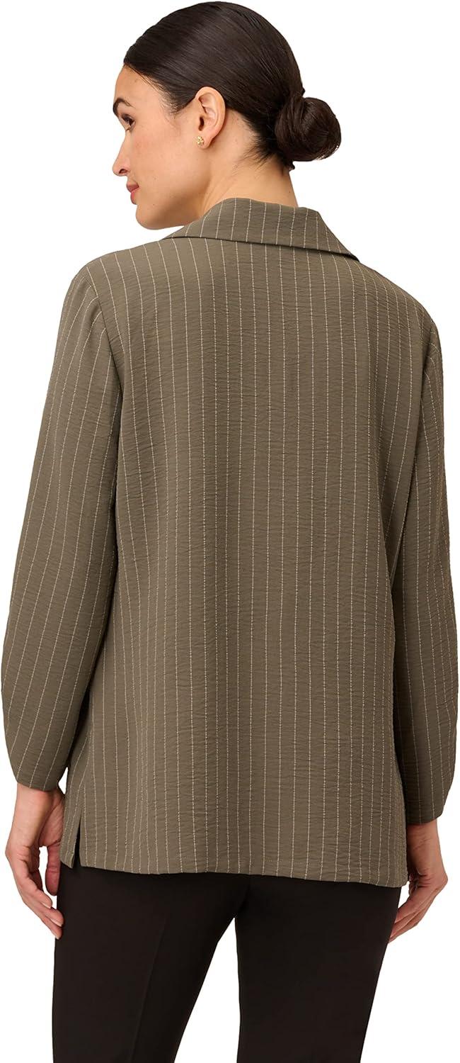 Adrianna Papell Women’s Print Collared V-Neck Knit Top(Black/Taupe Fine Stripe)
