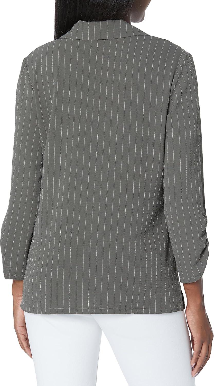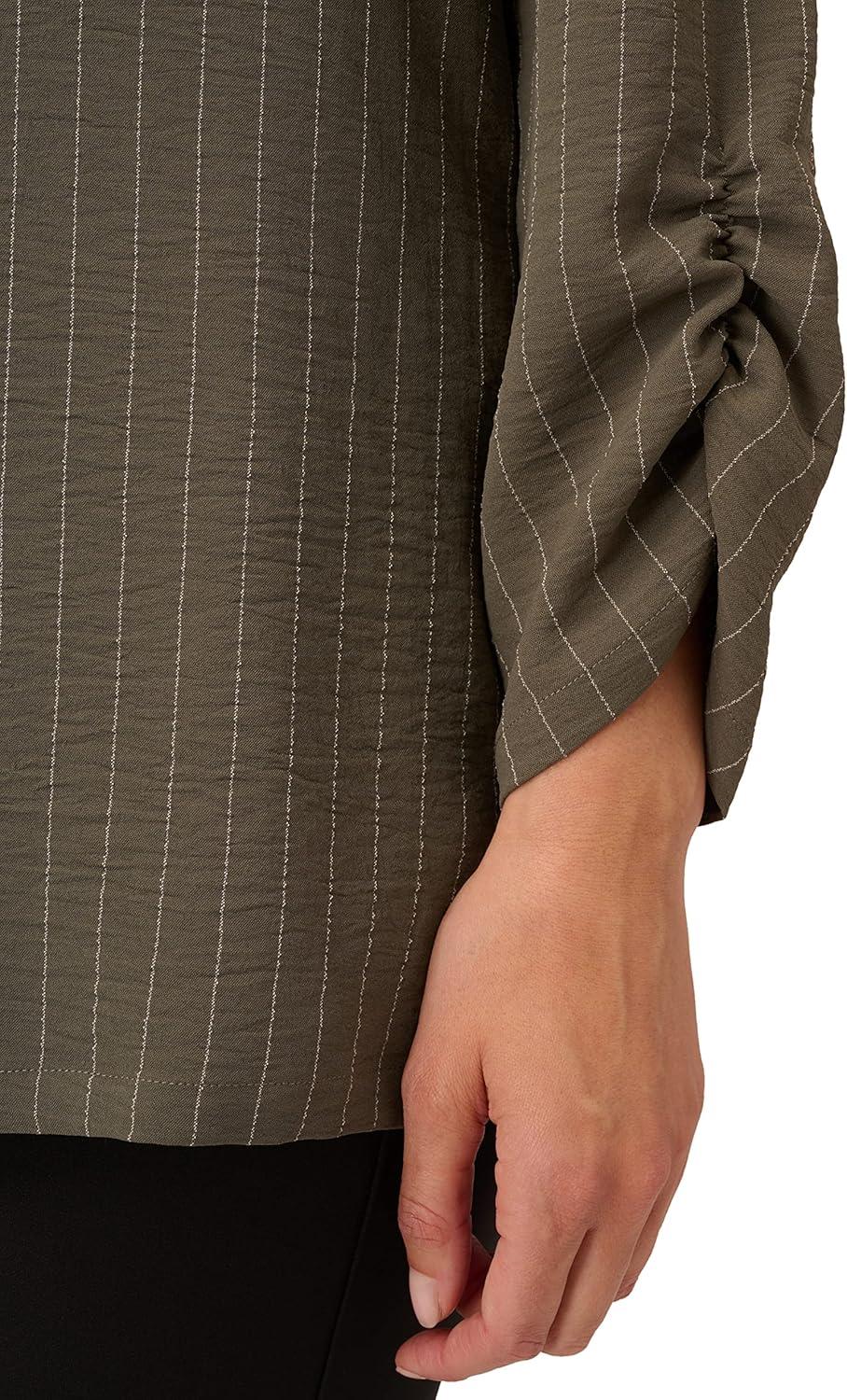 Adrianna Papell Women’s Solid Pleat Double Sleeve Top(Evergreen)