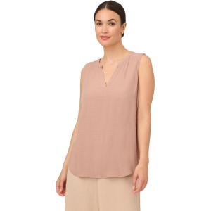 Adrianna Papell Women’s Solid Woven Dobby Dot Sleeveless V-Neck Top(Cocoa)