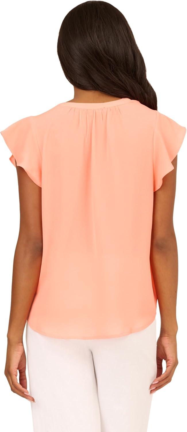 Adrianna Papell womens Solid Short Ruffle Sleeve Popover Blouse(Apricot Sorbet)