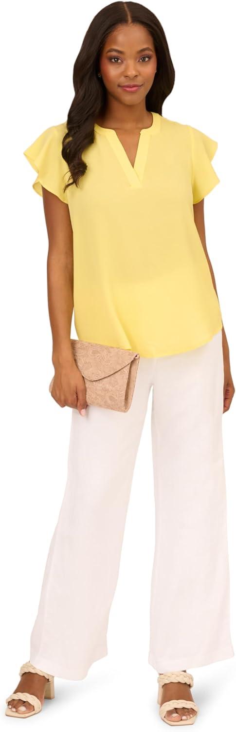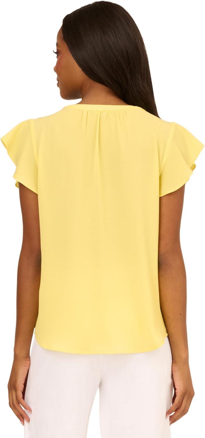 Adrianna Papell womens Solid Short Ruffle Sleeve Popover Blouse(Lemon Frost)