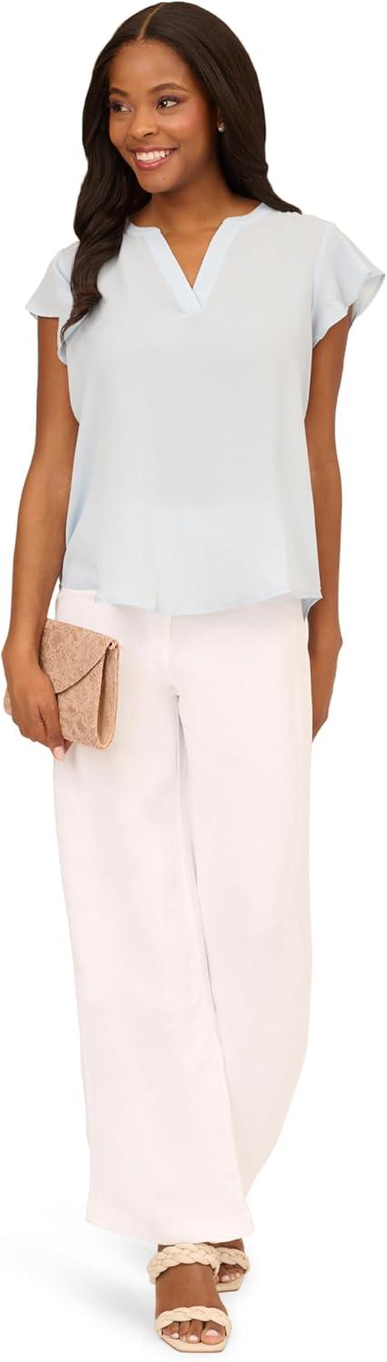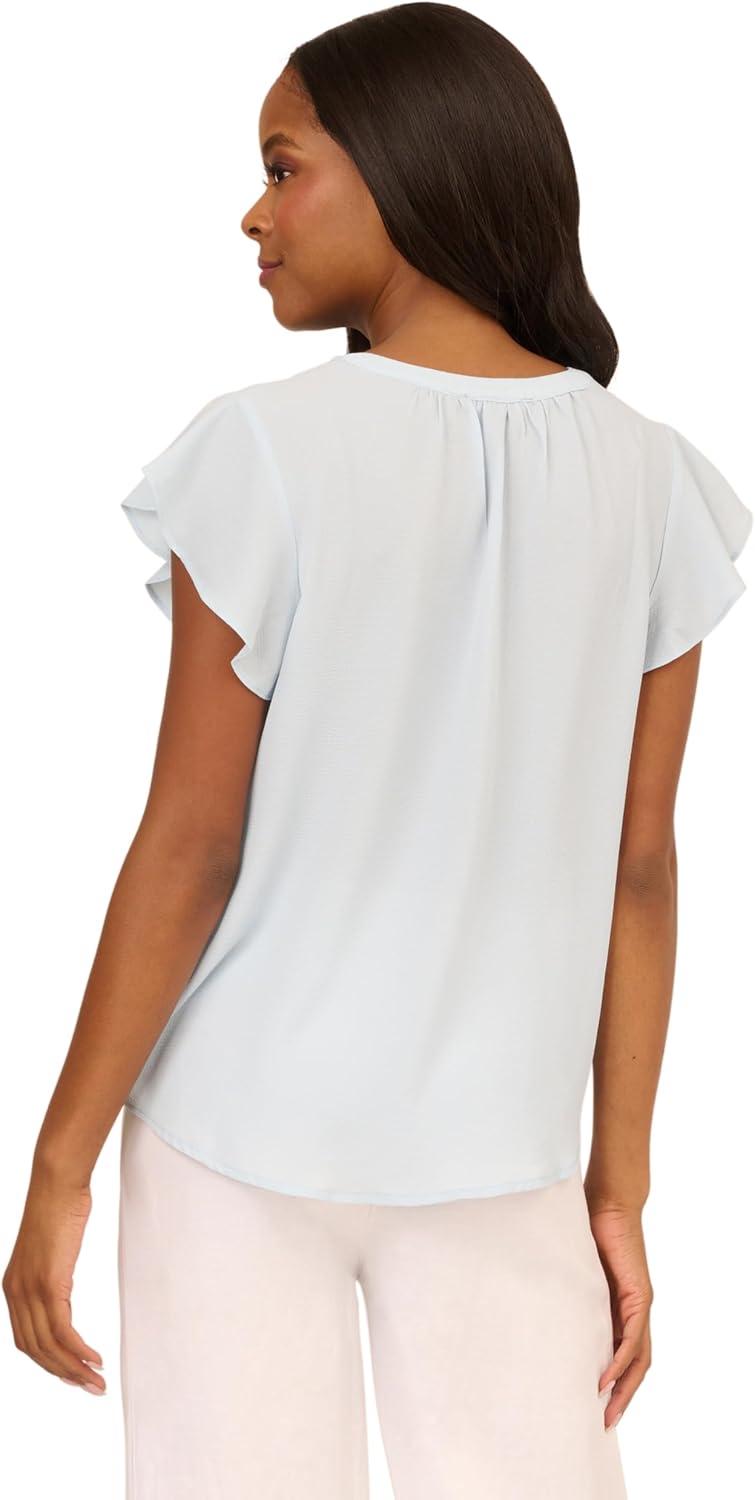 Adrianna Papell Women’s Solid Short Ruffle Sleeve Popover Blouse(Blue Moon)