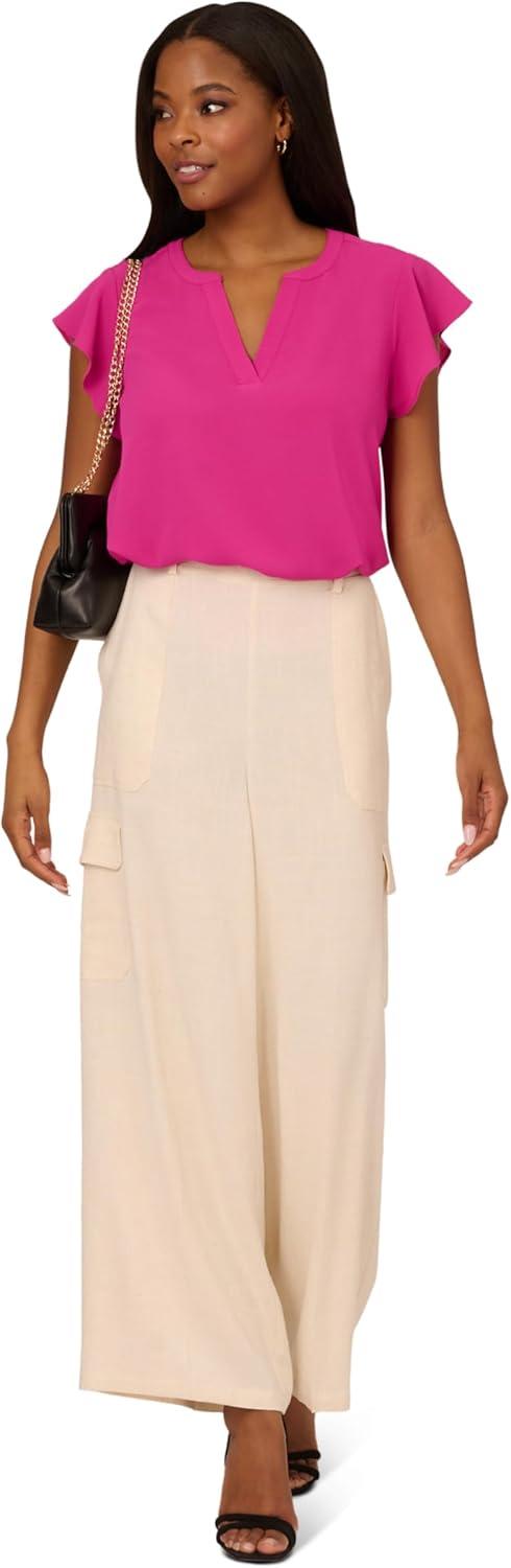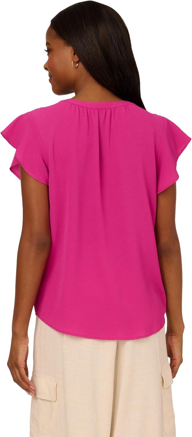 Adrianna Papell womens Solid Short Ruffle Sleeve Popover Blouse(Tropical Fuchsia)