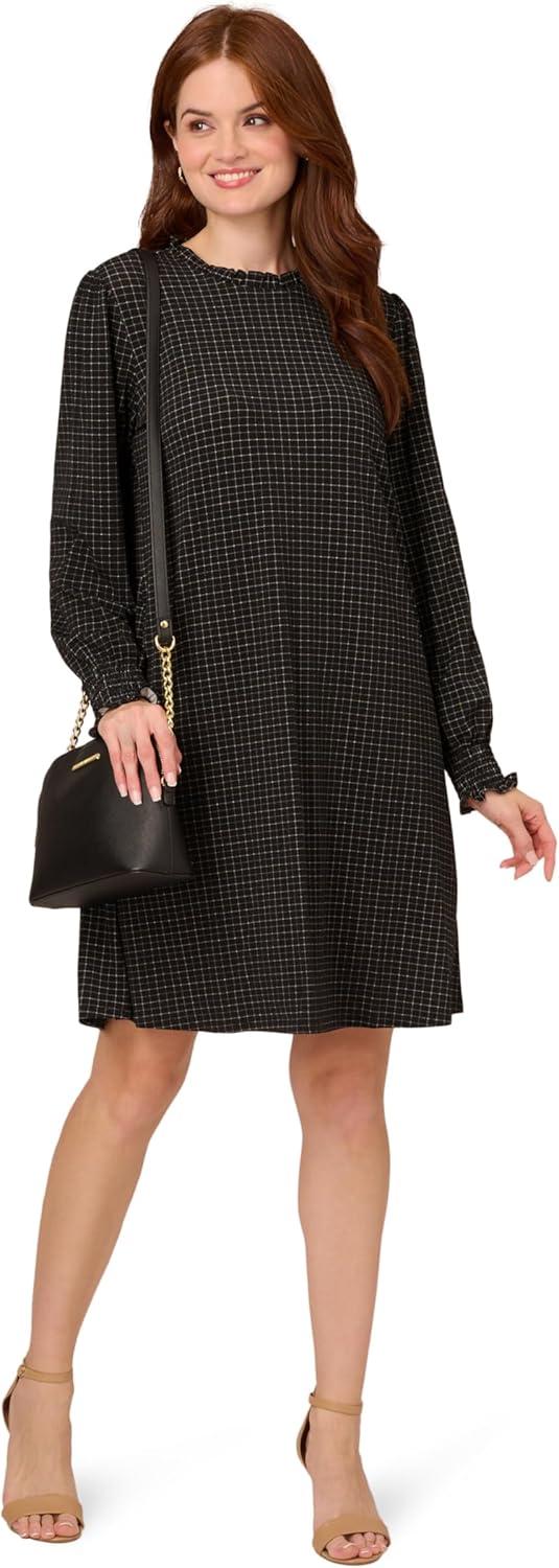Adrianna Papell Womens Printed Ruffle Neck Knit Dress(Black)