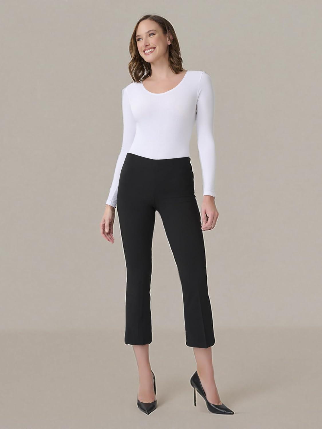 Adrianna Papell Womens Ponte Knit Pull on Pant with Kick Flare Hem(Black)