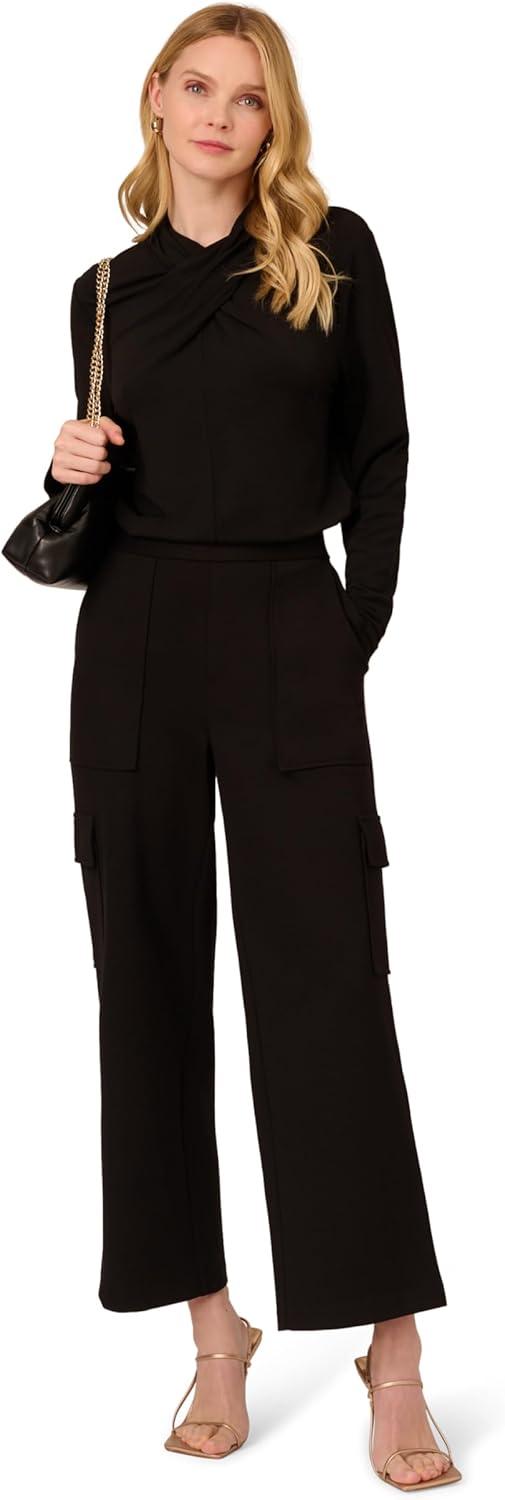 Adrianna Papell Womens Ponte Knit Cargo Pull on Pant(Black)