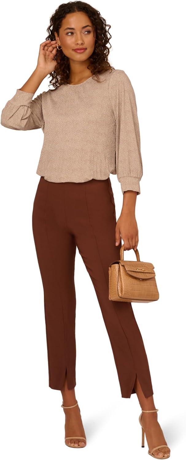 Adrianna Papell Women’s Pull on Pant with Front Slit(Mocha)