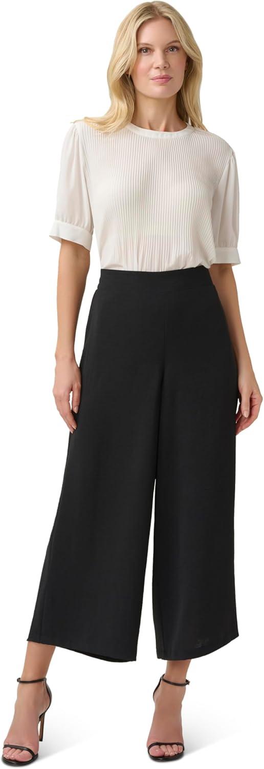 Adrianna Papell Womens Textured Wide Leg Pull on Pant W/Slit Pockets(Black)