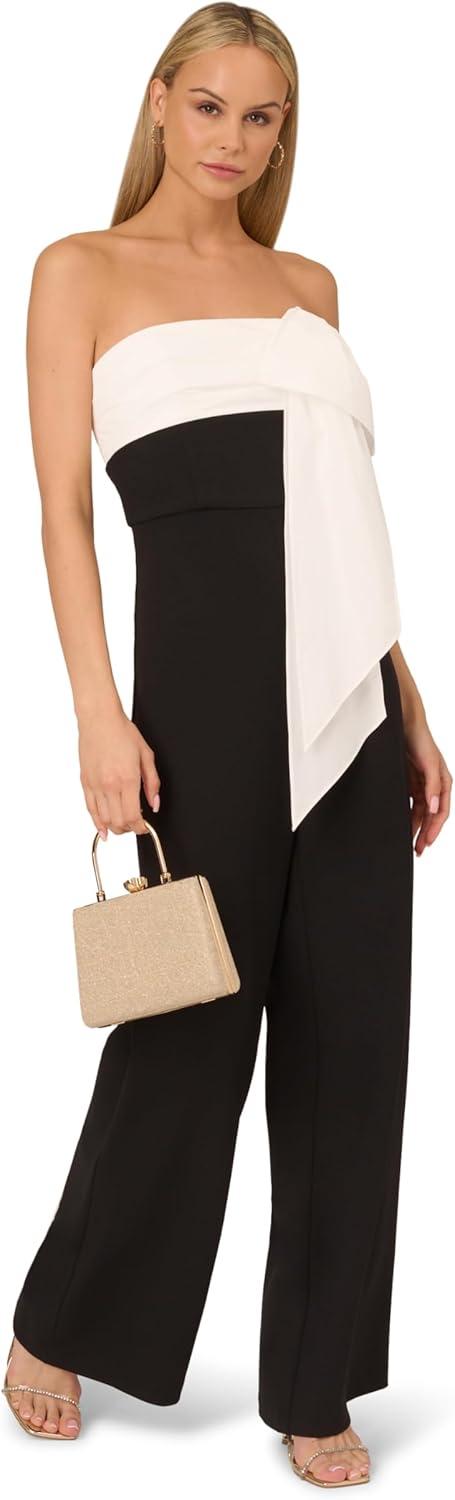 Adrianna Papell womens Knit Crepe Strapless Jumpsuit(Black/White)