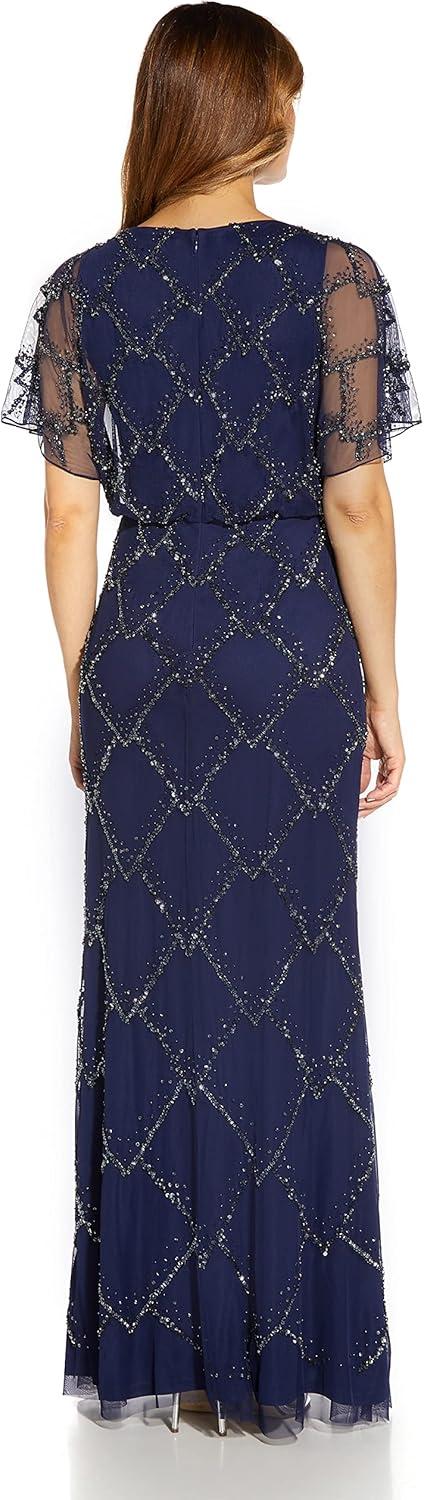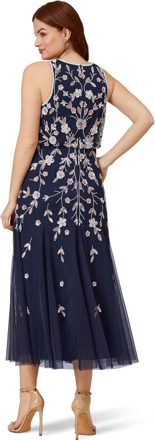 Adrianna Papell Women’s Beaded Blouson Dress(Navy)