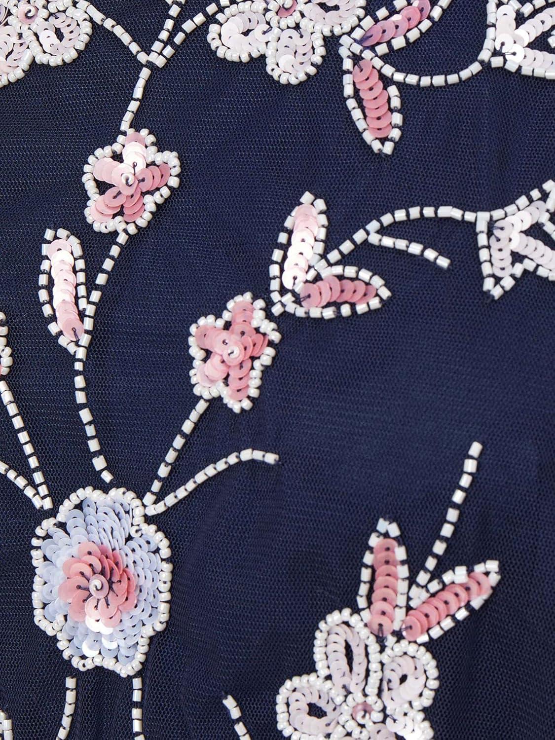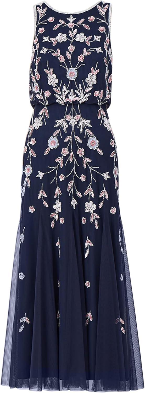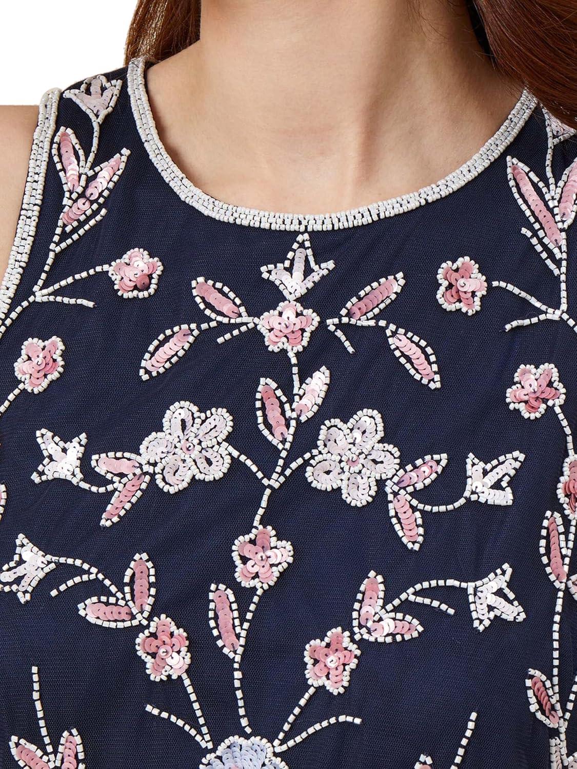 Adrianna Papell Women’s Beaded Blouson Dress(Navy/Blush)