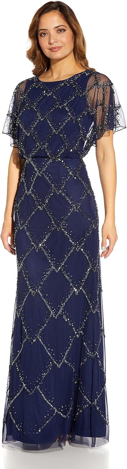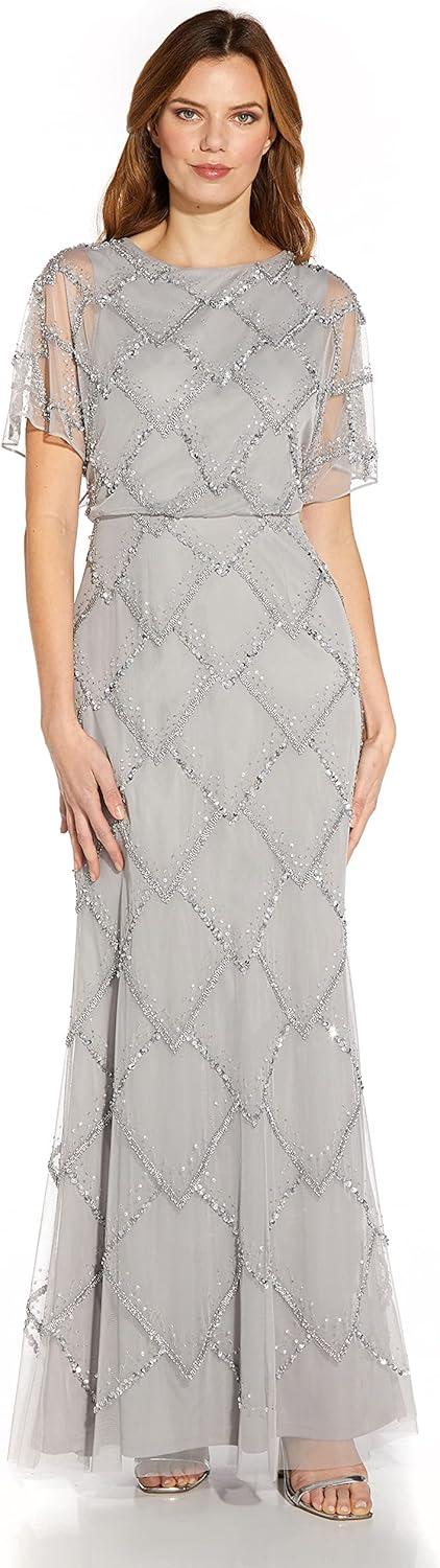 Adrianna Papell Women’s Beaded Blouson Dress(Bridal Silver)