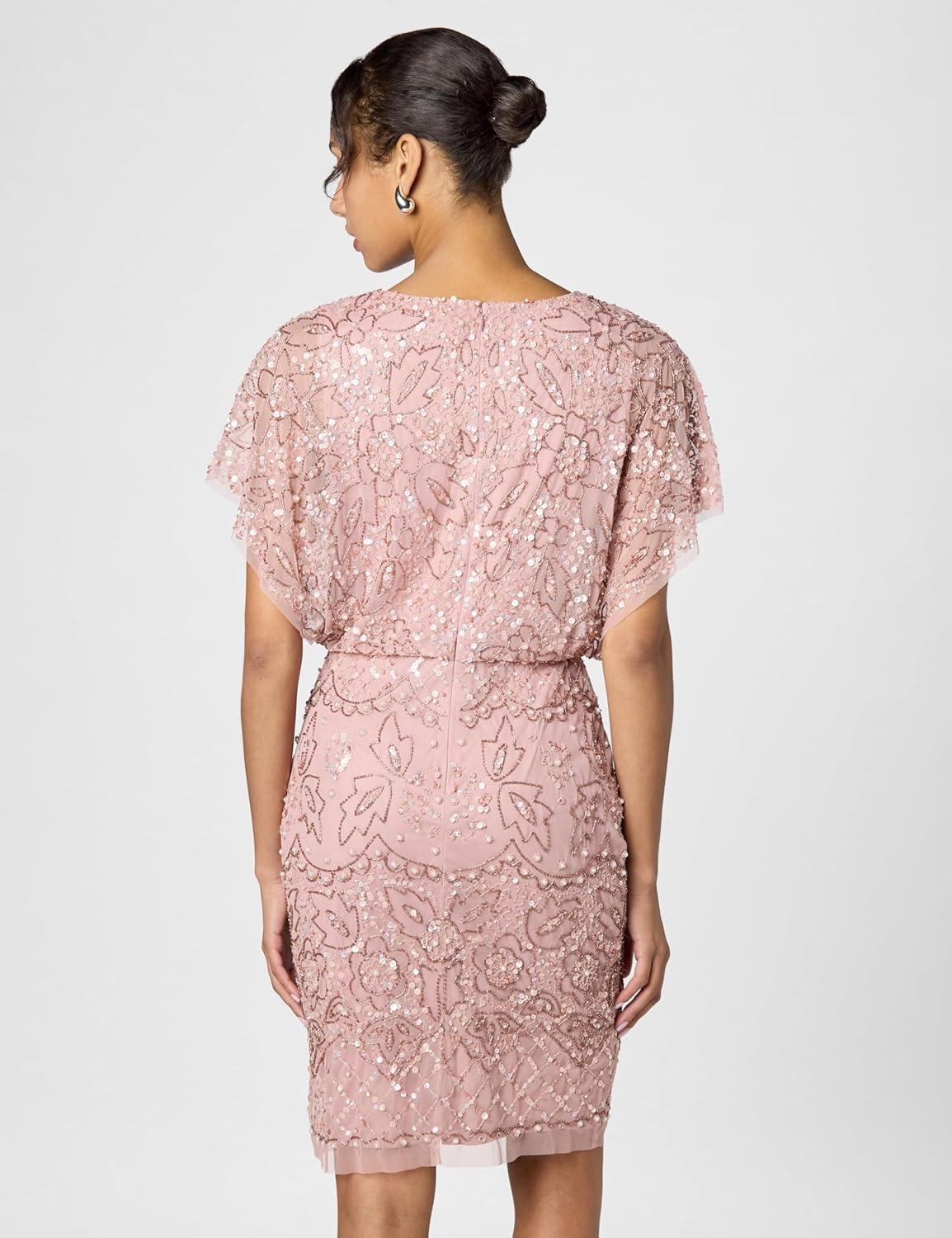 Adrianna Papell Women’s Beaded Mesh Blouson Dress(Candied Ginger)