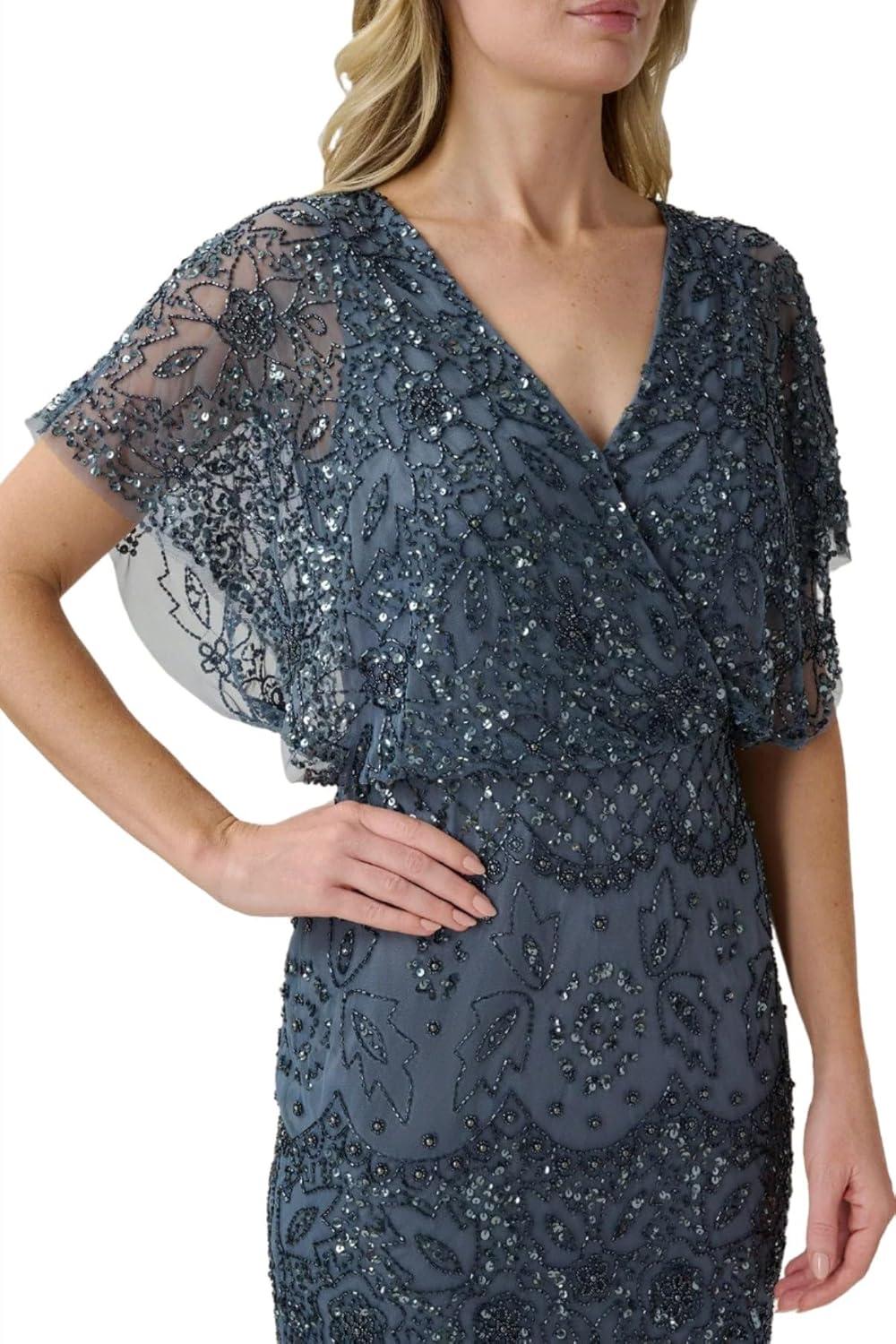 Adrianna Papell Women’s Beaded Midi Dress with Godets(Steel Rose)