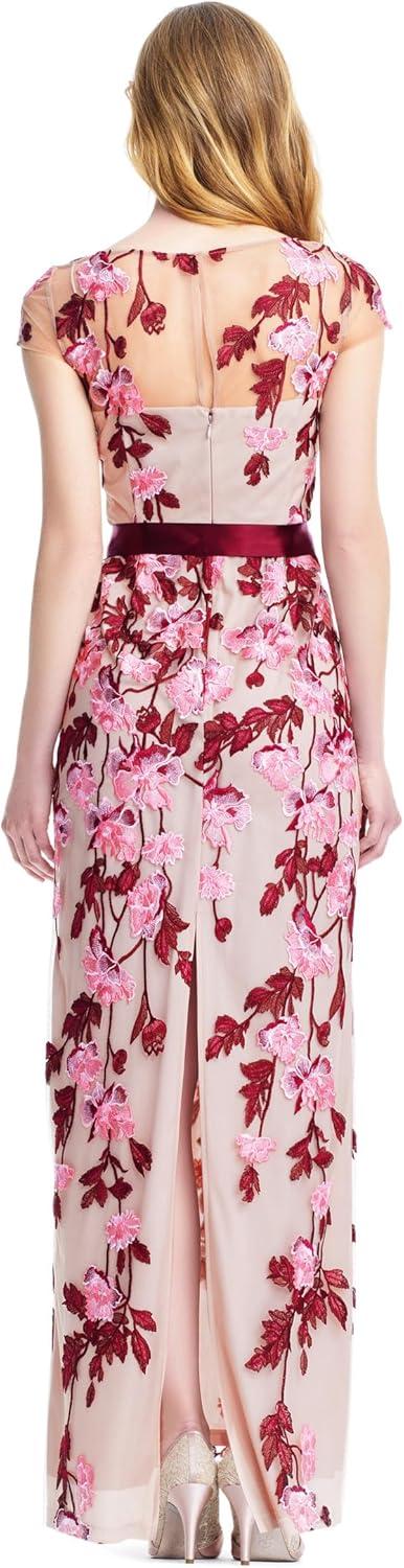 Adrianna Papell Womens Cascading Floral Colmn Gwn(Merlot Multi/Nude)