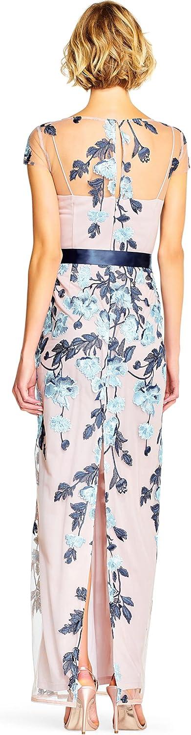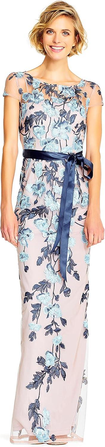 Adrianna Papell Womens Cascading Floral Colmn Gwn(Midnight Multi/Nude)