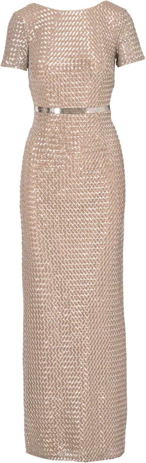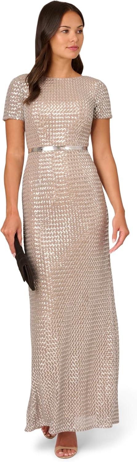 Adrianna Papell Womens Column Sequin Gown(Silver/Nude)