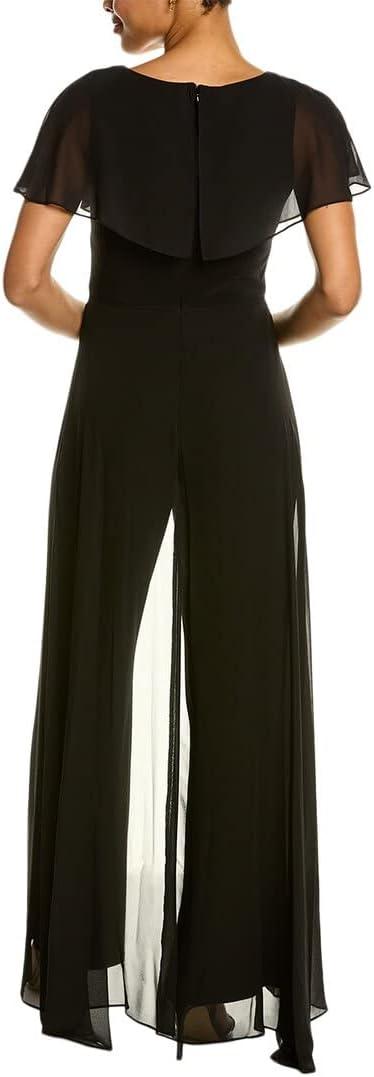 Adrianna Papell Womens Chiffon and Jersey Jumpsuit(Black)