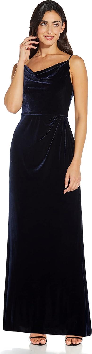 Adrianna Papell Womens Cowl Neck Velvet Gown(Midnight)