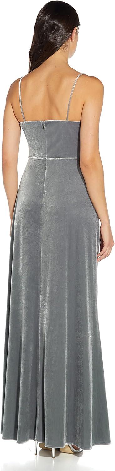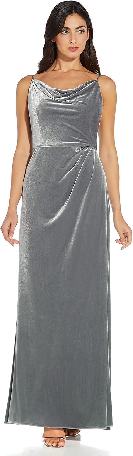 Adrianna Papell Womens Cowl Neck Velvet Gown(Silver)