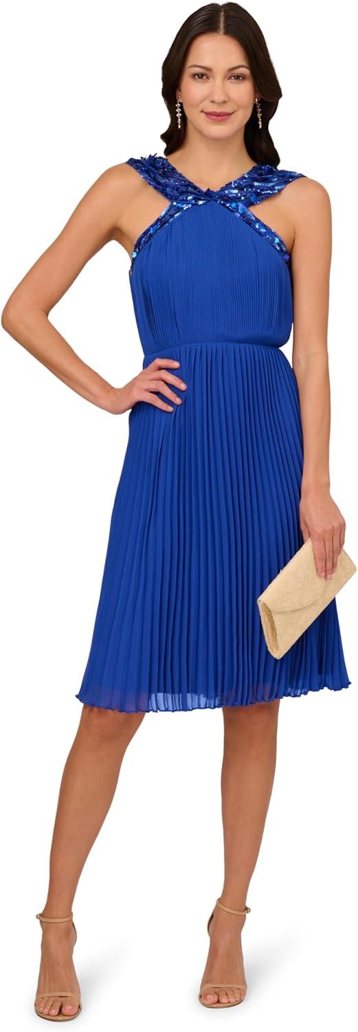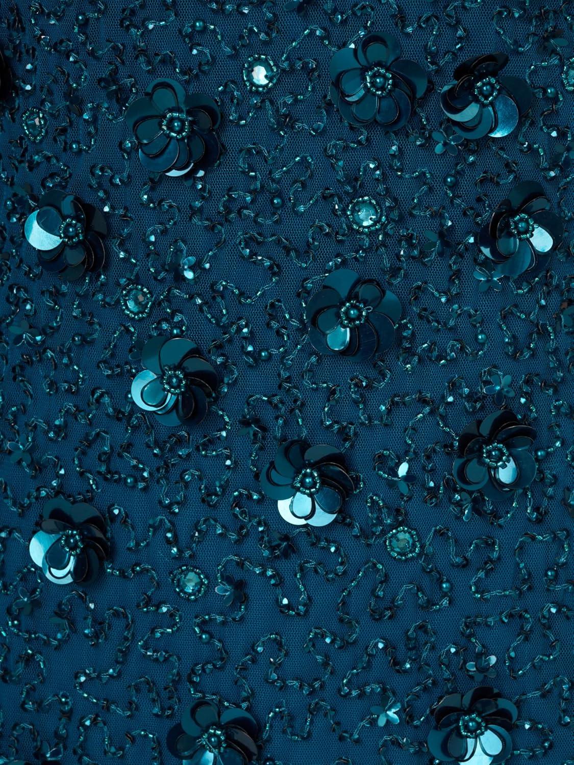 Adrianna Papell Womens Beaded Cocktail Dress(Teal Sapphire)