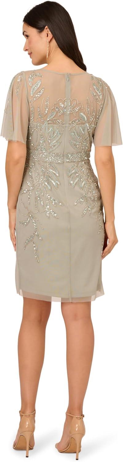 Adrianna Papell Womens Beaded Cocktail Dress(Frosted Sage)