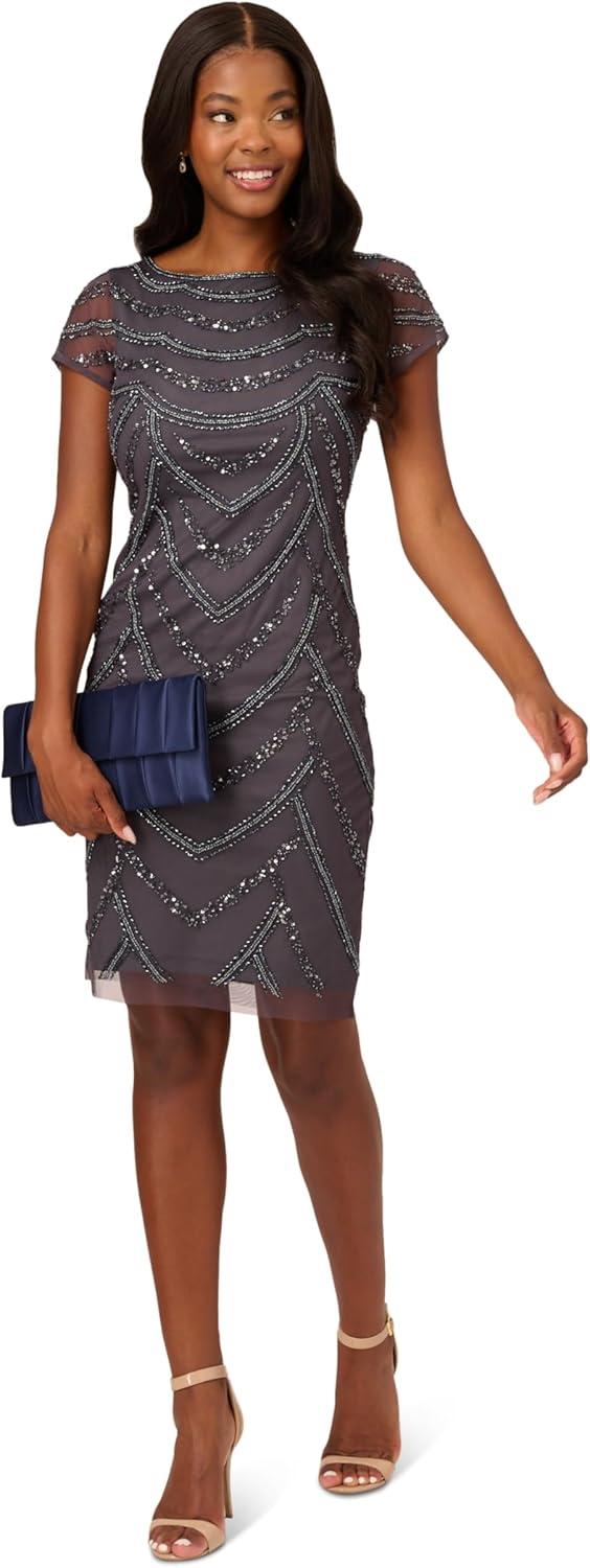 Adrianna Papell Womens Beaded Cocktail Dress(Gunmetal)
