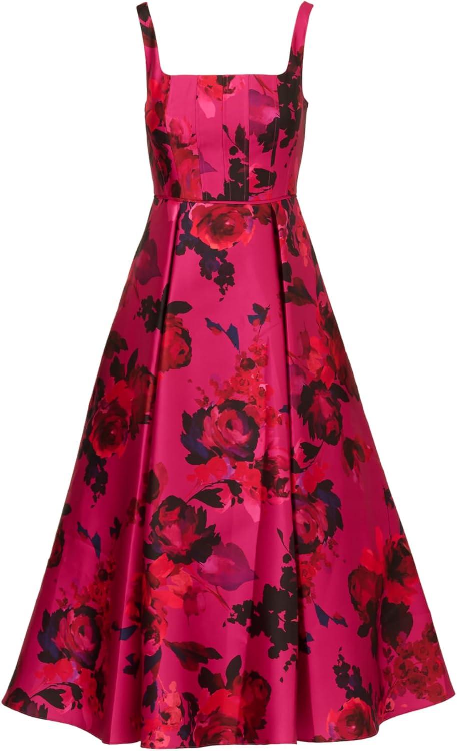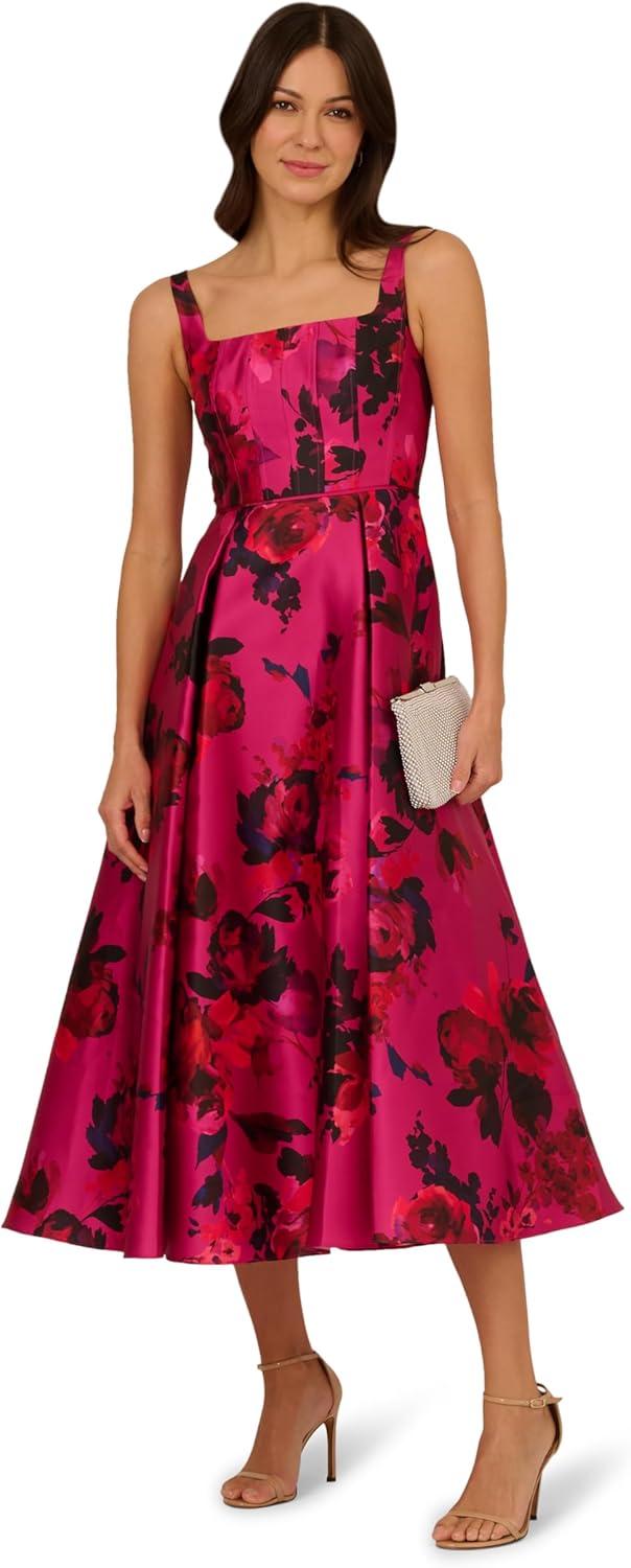 Adrianna Papell Womens Rose Jacquard Ankle Dress(Pink Multi)