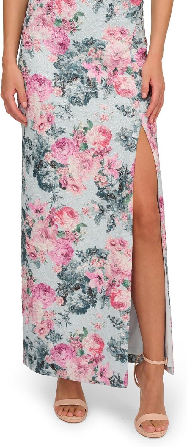 Adrianna Papell Womens Jacquard Long Dress(Blue Multi)