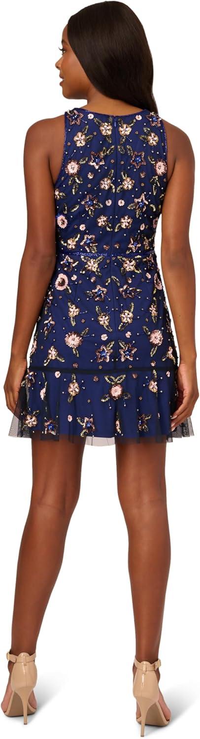 Adrianna Papell Womens Floral Beaded Short Dress(Midnight Multi)
