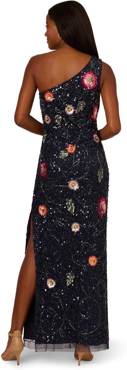 Adrianna Papell Womens One Shoulder Beaded Dress(Dusty Navy)