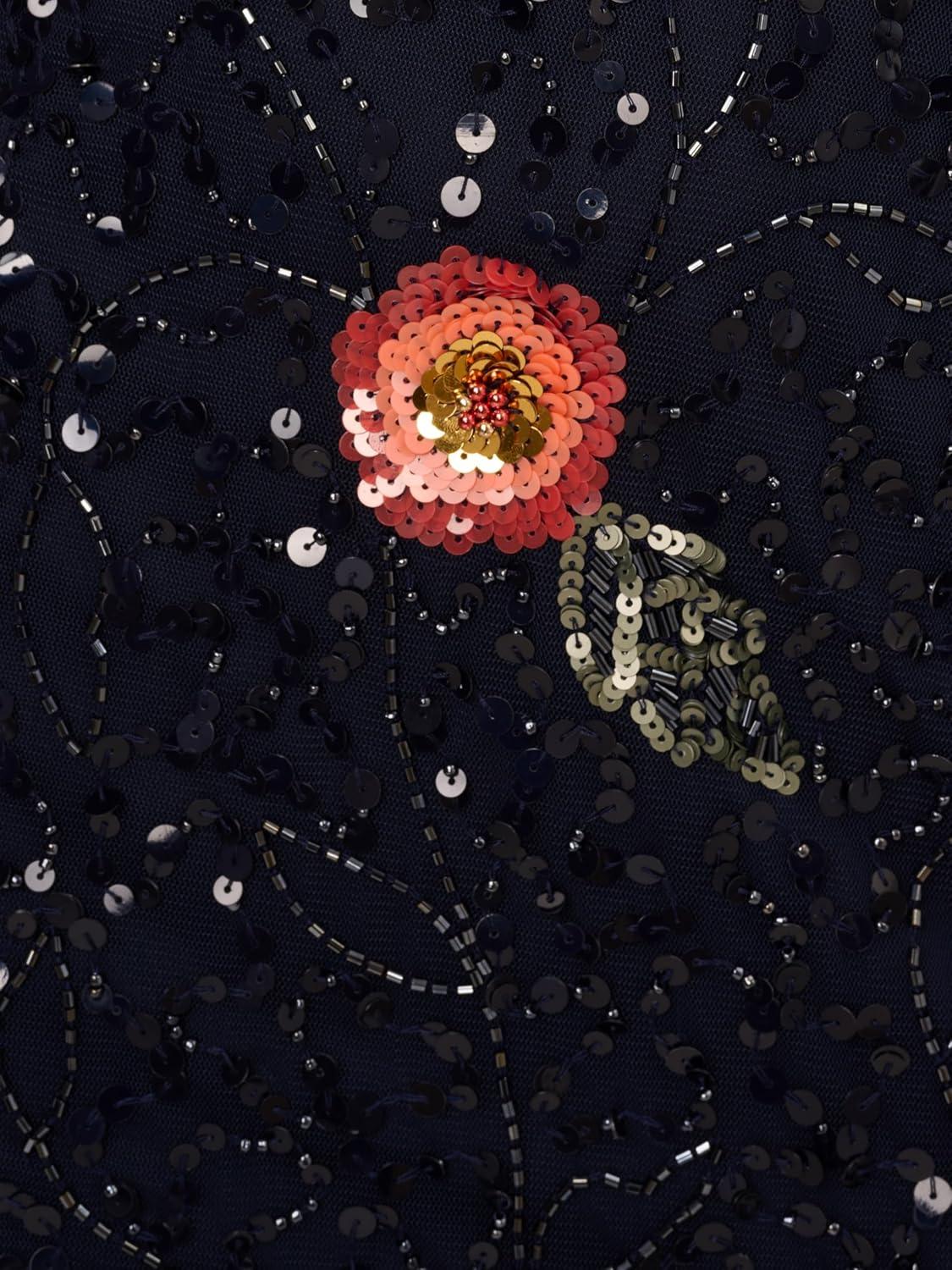 Adrianna Papell Womens Multi Floral Beaded Dress(Black Multi)