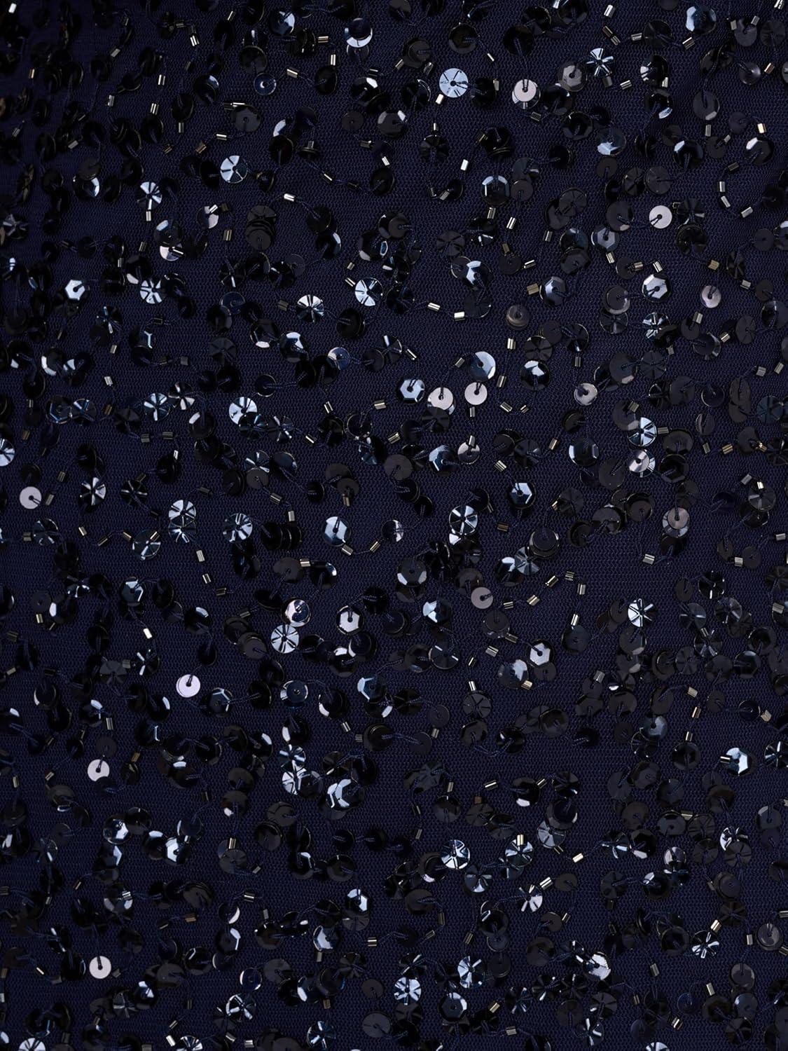 • Adrianna Papell Womens Bead Mesh Popover Dress(Light Navy)